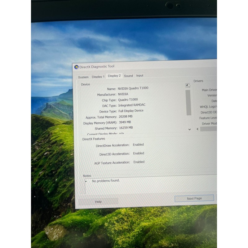 | Model | NVidia Quadro T1000 (4GB GDDR5) |